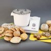 The Tru-Mix dough hook mixes and kneads quickly and thoroughly. The mixing bowl’s 5.5 quart capacity allows you to mix dough for up to six loaves of bread (or less if you wish), and the Tru-Mix dough hook takes only about five minutes to completely knead even a full load of dough. The circulatory kneading of the WonderMix Revolution does an excellent job of developing gluten, so your dough will rise properly and your baked goods will have the light and uniform texture you want. A comfortable handle gives you a secure grip on the bowl, and the bowl locks positively on the mixer base.