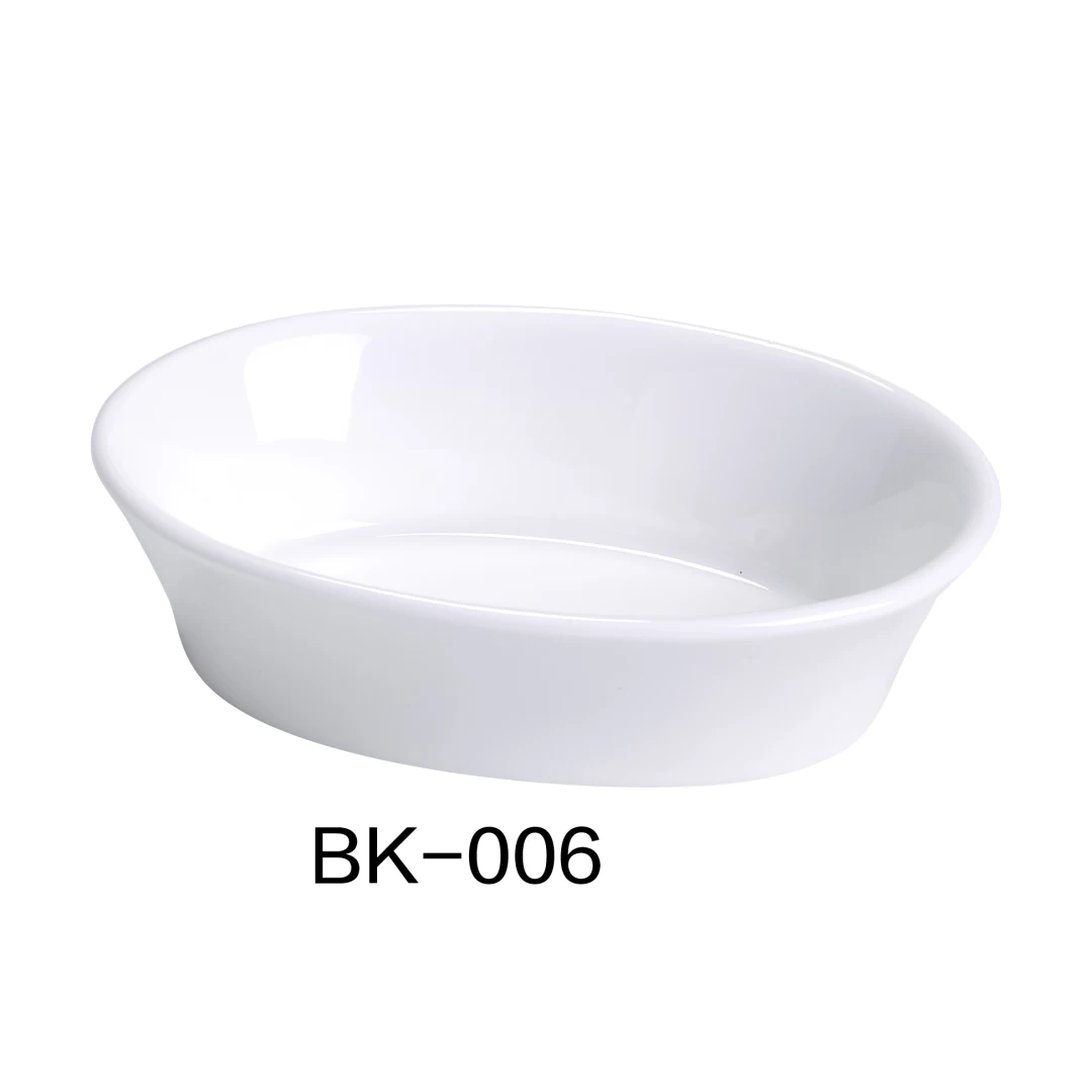 This porcelain baking dish can be used in the oven and to serve food. It comes in a classic bright white color that works well with any cuisine.