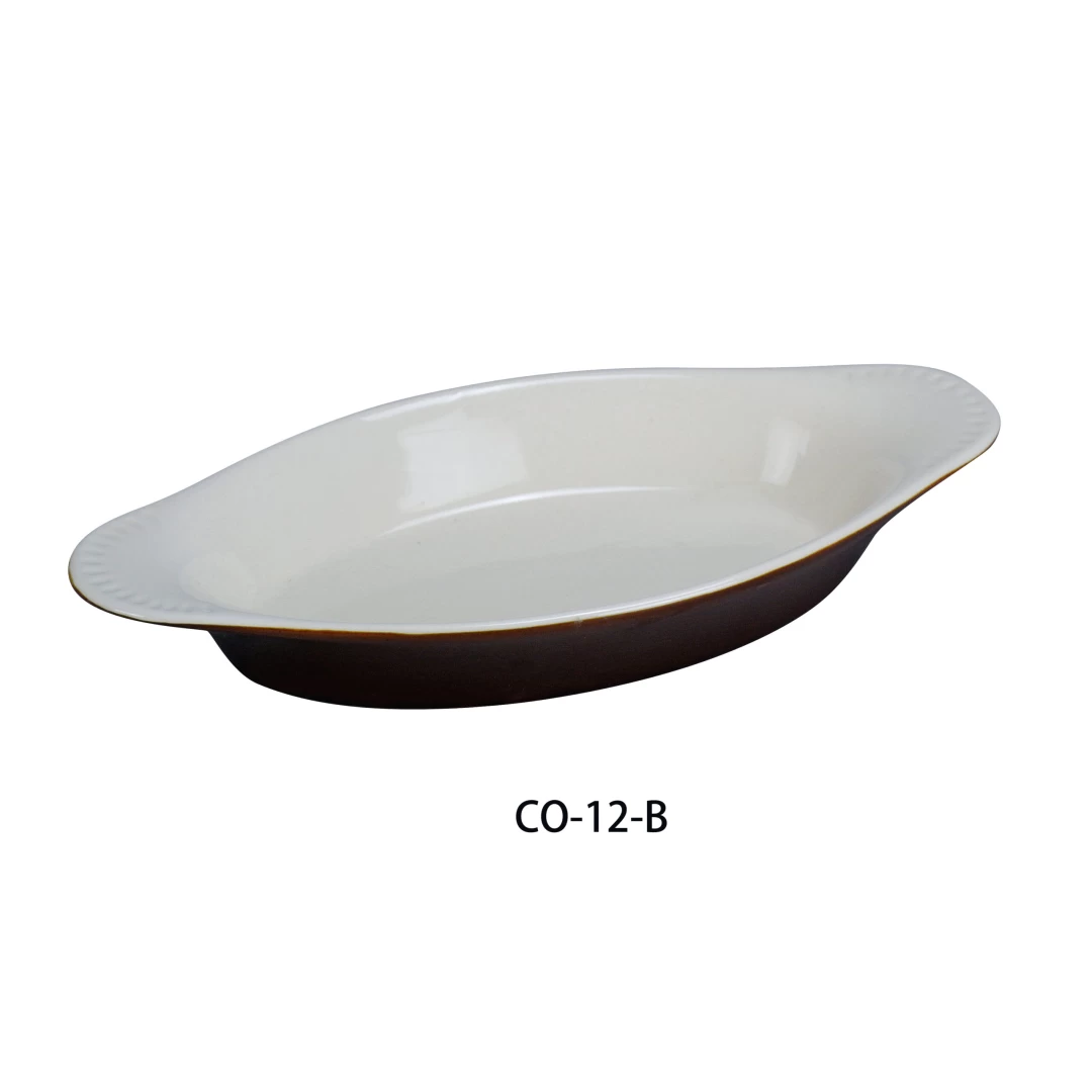 Yanco CO-12-B Welsh Rarebit Crock, Oval, 12 Oz Capacity, 10″ Length, 5.35″ Width, 1.25″ Height, China, White/Brown Color, Pack of 36