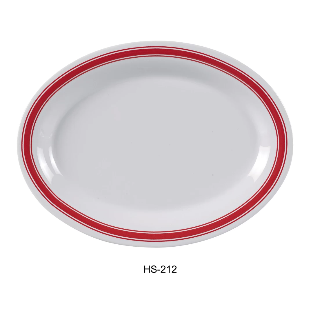 White with red-banded rims melaminew dinnerware, great for creating a rustic vibe, heavy duty and break resistant