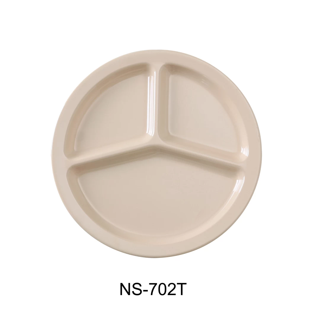Yanco NS-702T Nessico 3-Compartment Plate, 10″ Diameter, Melamine, Tan Color, Pack of 24