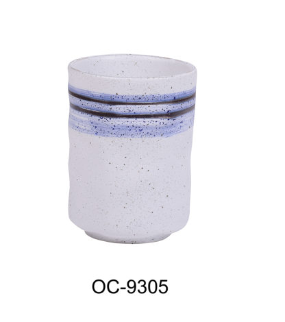These eye-catching tabletop items exude an aged vibe that contributes well to the dining experience. The faded blue rims combined with the rough texture give the products character.