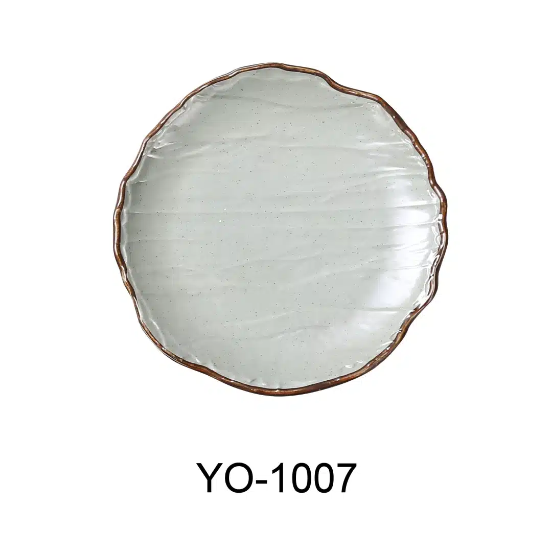 The item features a matte green tea colored finish along with highlighted brown edges, making it a great alternative choice for Asian style table settings.