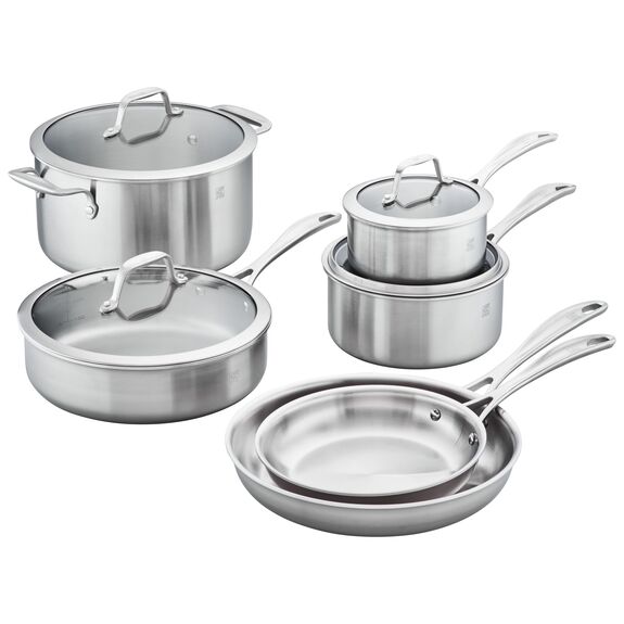 ZWILLING Spirit 3-Ply gets you in the mood to cook. Thanks to a thick, aluminum core, these versatile pans are fast-heating and boast an even cooking surface. The exclusive, stay cool handles are designed for easy maneuvering with oven mitts and the dripless pouring rims help prevent kitchen spills. The tight-fitting tempered glass lids allow you to effortlessly monitor your cooking.